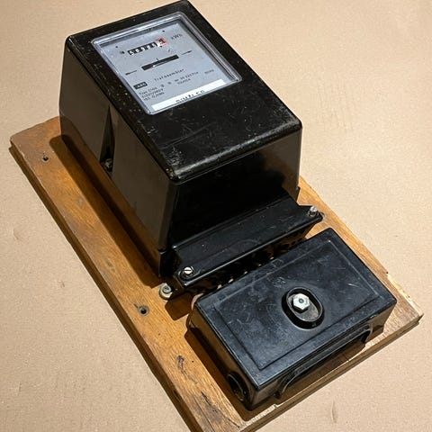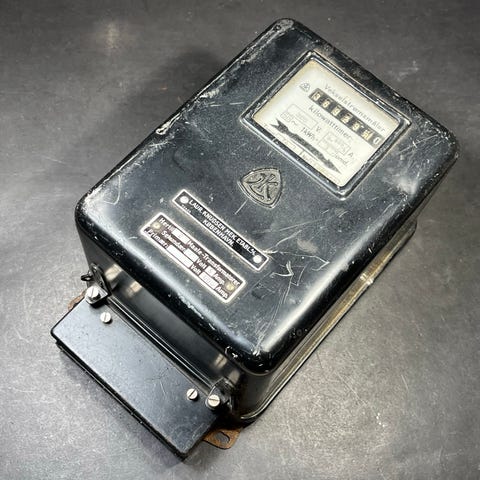 Ældre sort LK vekselstrømsmåler / el-måler / tavle / bimåler, Type L9J