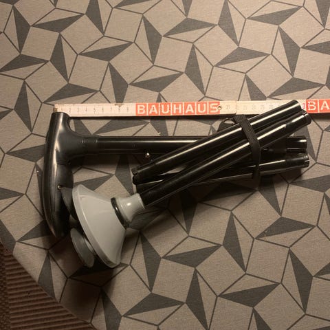Vandre stokke til stavgang med ekstra gummisko til hårdt underlag. Højden kan justeres fra 100 til 140 cm. Ved vandring i naturen med blødt underlag kan der påmonteres en plade mod nedsynkning i jorden - se foto.