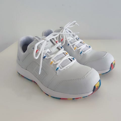 Komfortabel sikkerhedssko med en flerfarvet ydersål.