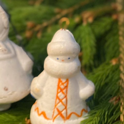 juleklokker i messing, gamle glaskugler og julepynt fra Daells Varehus.