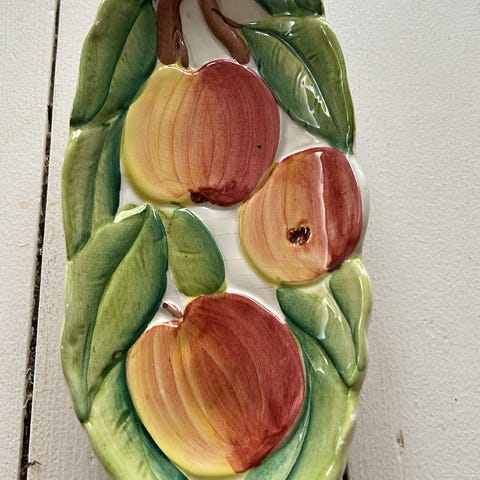 Fad og bordlampe med reliefdekor i naturlig meleret lys terracottafarve. Fadet har en rund form med dekorative mønstre langs kanten, og lampen har en matchende reliefdetalje på lampens base. Materialet er ler der giver et rustikt og naturligt udtryk. Passer til brug som dekorative elementer i hjemmet.