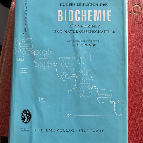 Sjælden original tysk undervisningsplakat fra 1960’erne, udgivet som supplement til P. Karlson: Kurzes Lehrbuch der Biochemie für Mediziner und Naturwissenschaftler, 4. Auflage, Georg Thieme Verlag, Stuttgart 1964.