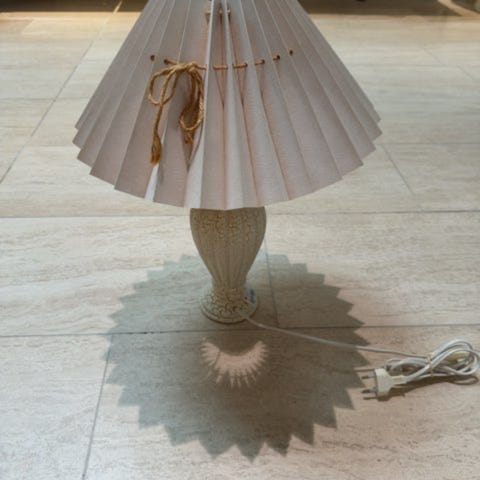 Lampens skærm er plisseret, mens stativet er af metal med en robust, rund fod.,Afhentes i:,Røde Kors Kolding (621),Bemærk at mail, chat og beskeder ikke besvares, og varen skal købes på knappen "Gå til varen"
