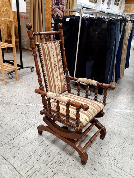 Stolen har en polstret, behagelig ryg og sæde i lyst læder. Den har træarmlæn i en lys nuance.,Afhentes i:,Røde Kors Bellinge (461),Bemærk at mail, chat og beskeder ikke besvares, og varen skal købes på knappen "Gå til varen"