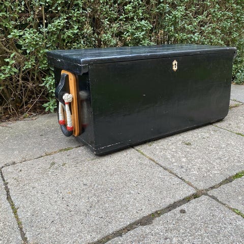 Gammel cylinderformet sømandskiste/skibskiste fra 1800 tallet.