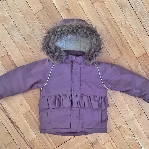 Bomber jakke fra Name It. Generelt pæn stand, men har lidt slid. Se eks. billede 3. Kommer fra røgfrit hjem og er udelukkende vasket i parfumefri vaskemiddel.