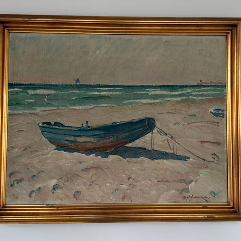 Håndmalet. Monteret på blindramme.