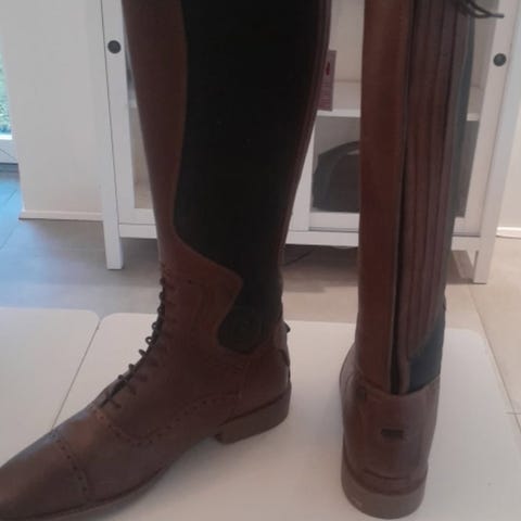 Helt nye ridestøvler! Prøvet på to gange. Jeg får ikke brugt disse støvler brugt og derfor leder de efter en ny rytter. Nypris 3200. Bemærk elastik i læggen. Farven er mørkebrun. De leveres i original kasse. Kan leveres på Sjælland.