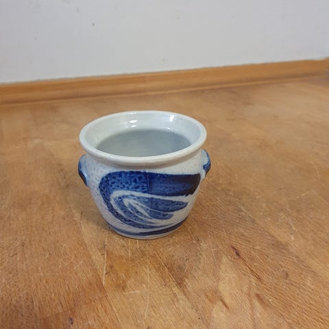 Fineste ældre marmeladekrukke m. æbletræ på, Fin porcelænskrukke med træer, bla et æbletræ på, plads til ske - se billeder