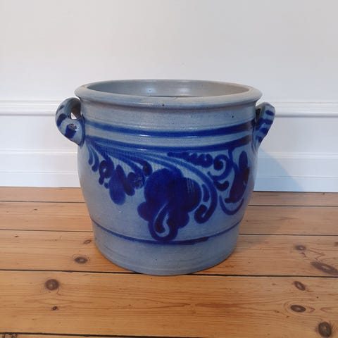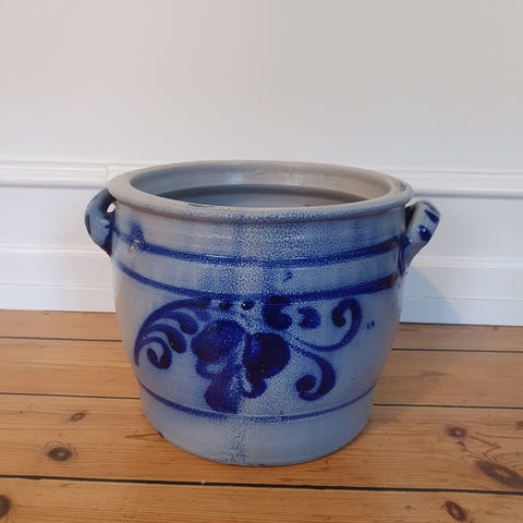 Fineste ældre marmeladekrukke m. æbletræ på