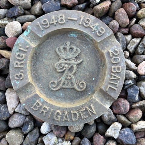 Militær, Askebæger fra 2 verdenskrig, Gammelt zink askebæger fra krigen. Motiv 6 slotte, CX til hest samt valgsprog: Min gud Mit land Min ære. Findes kun i få eksemplare