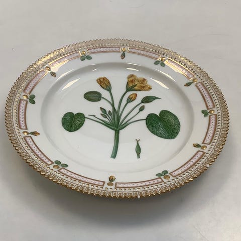 Royal Copenhagen Flora Danica Gennembrudt Frokosttallerken No 3554. I perfekt stand. Latinsk Navn: Corydalis fabacea Pers Måler 22,5cm / 8 7/8 inch