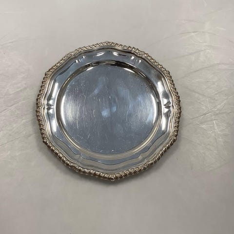 Dansk Sølvplet Flaskebakke. Kantet udformet. Har tegn på slitage Måler 11 cm / 4,33 inch