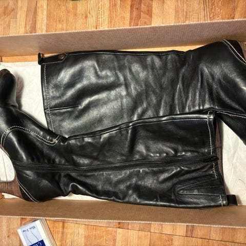 Har dog lidt naturlige brugsrynker i skind hen over fodknæk og fået lidt hakker og ridser under dansen, nogle der dog kan “pudses næsten væk” med skopolish.