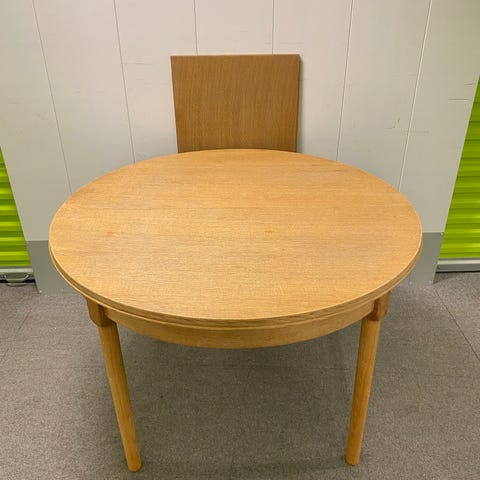 Rundt spisebord i egetræssildeben. Det er 140 cm i diameter, hvilket er praktisk fordi der kan sidde 8 rundt om. Der er desuden meget plads på midten til eks mad, hvilket er ret smart.