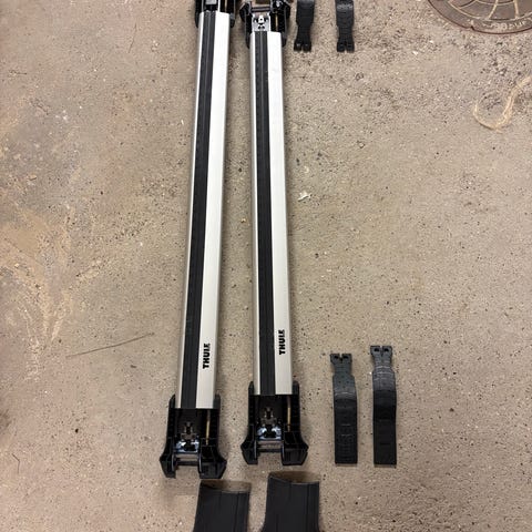Thule wingbar edge tagbøjler i længden 94,5 og 102cm med monteringstilbehør, bøjlerne kan varieres lidt i længden. Top tagbøjler fra Thule med minimal støj, passer til Flush tagrælling.