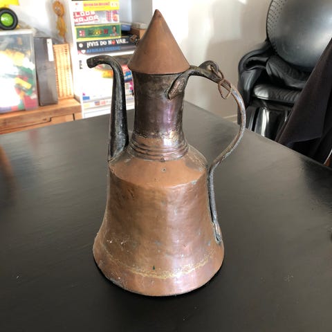 Gammel kobber kande. Den er tung og vejer 1075 g.