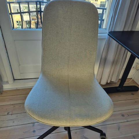 Sælger en IKEA LÅNGFJÄLL kontorstol i grå stof med sort stel og hjul.