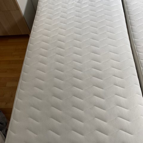 Eneste brugstegn er en lille bitte smule fnulderpå den ene side . Er ellers altid brugt med rullemadras og lagen over . Kun brugt sporadisk i nogle måneder . Fra hjem uden røg, dyr og parfume . Sælger fordi den er for blød til mig desværre.