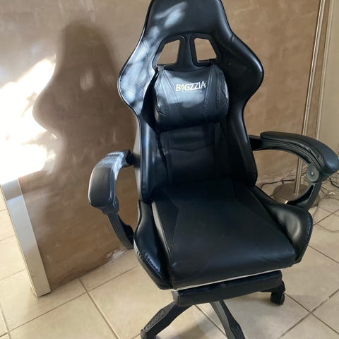 Gamerstol med benstøtte. Virker fint, men har brugsspor. Derfor prisen. Hentes i Brønshøj.