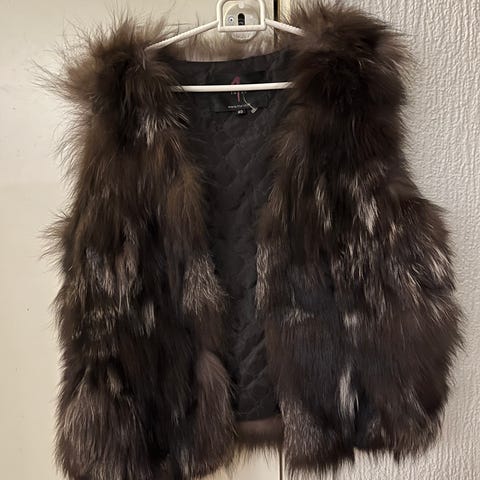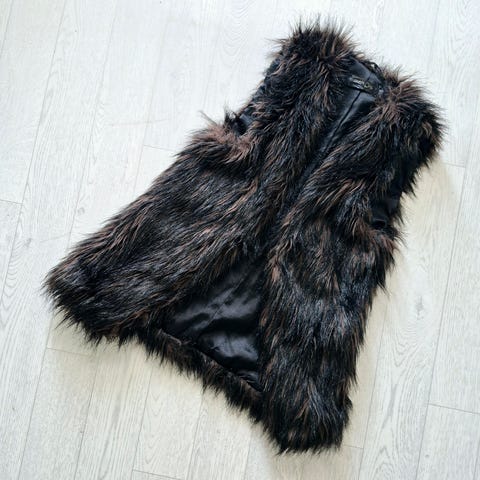 Que Beige Pelsvest til kvinder i størrelse L. Vesten har et pelsmateriale med beige, grå og hvide nuancer. Designet er uden ærmer og egnet til lag-på-lag udenpå en hvid skjorte evt.