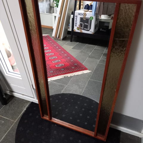 Mindre vintage spejl med smukt udført teaktræsramme. Fra 50'erne - 60'erne.