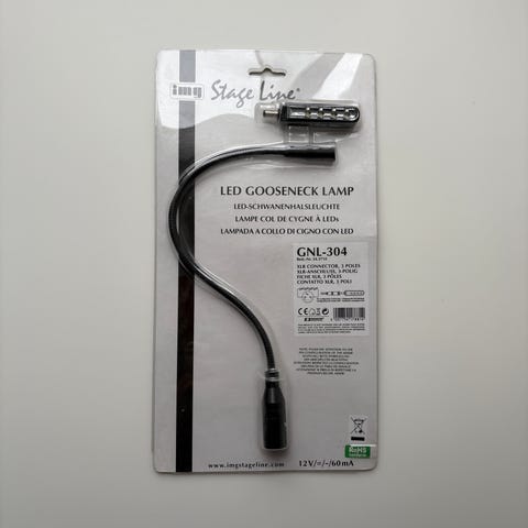 Double LED lamp on clamp. For example for music stand, mixer, guitar pedals, record player. Each has two LED bulbs (4 in total), so it shines brightly and uses little power.