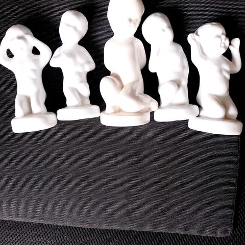 5 stk figurines sæt bestående af flere små figurer i blå og hvid porcelæn. Figurerne forestiller børn i forskellige positurer og aktiviteter. Materialet er porcelæn, og farverne er primært blå og hvid. Velegnet som dekorative samleobjekter.