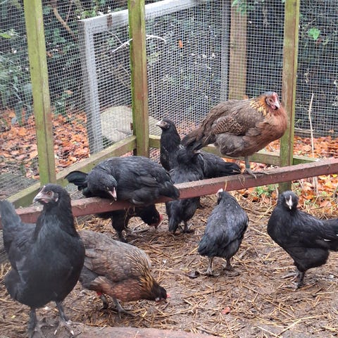 Høne 150 kr. Hane og de 2 kyllinger 50 kr stk. sælges helst samlet men hanen er jo som minimum halvbror til de andre.