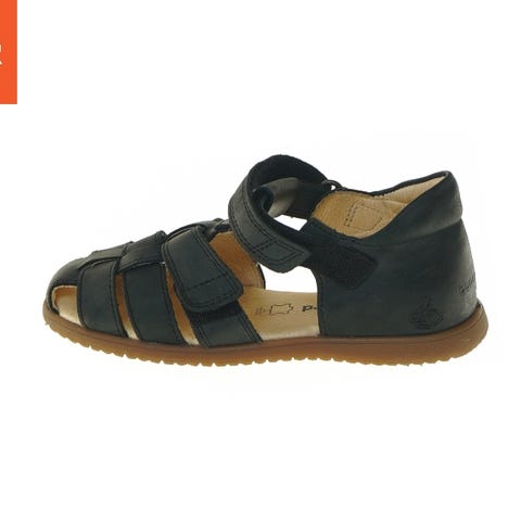 Par brun sandaler i størrelse 25 til børn, fremstillet af læder med en solid gummisål. Sandalerne har en åben tådesign med stropper, der giver komfort og støtte. De er udstyret med en velcrolukning for nem justering og påføring. Bundgaard mærke er præget synligt på bagsiden af sandalen.