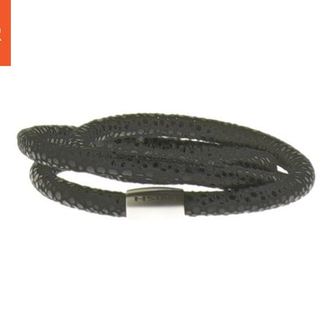 Sort læderarmbånd med guld detaljer fra Christina Watches (str. Ø 5,5 cm)