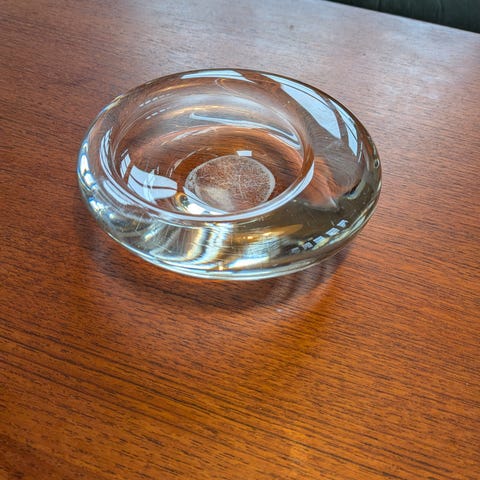 Holmegaard glas askebæger, men altid blev brugt som smuk dekorativ skål på bord til smykker og lignende.