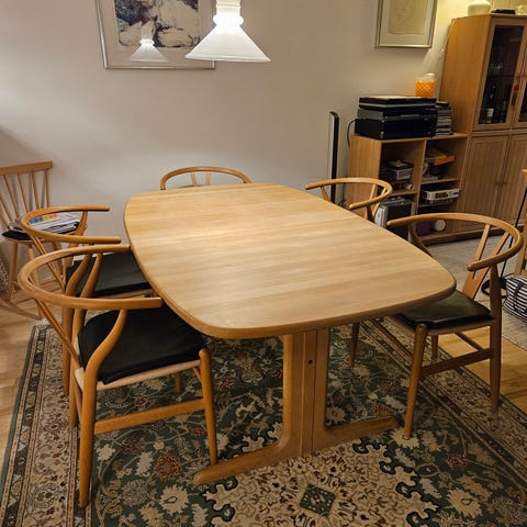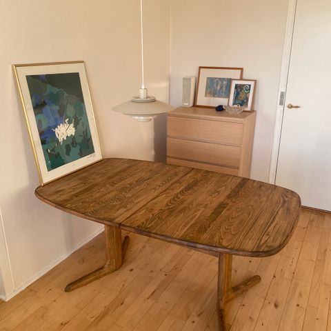 Til bordet kan 2 stk tillægsplader medfølge, de er dog beskadiget i fineren, så de kan kun bruges med dug på.