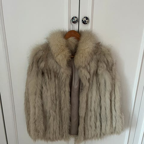 Lækker rævepels i str medium fra det gamle Christian Hjort Willums i Grenaa. Super lækker pels I harlekinmønster med silkeinderfoer
