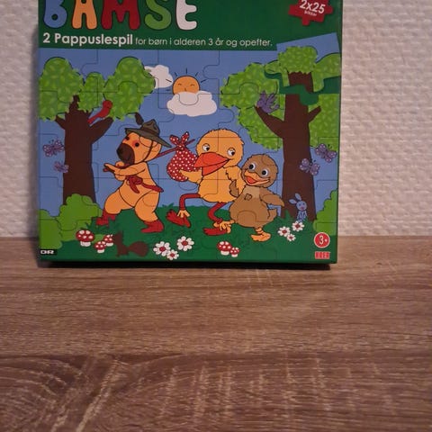 Bamse børnepuslespil bestående af to puslespil med hver 25 brikker. Puslespillene har motiver med dyr og figurer fra Bamse-universet. Hver puslespils størrelse er cirka 21 x 31 cm. Egnet til børn fra 3 år og opefter.