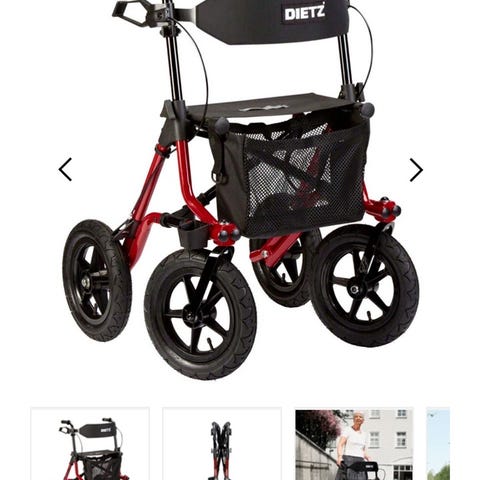 Den vejer ca. 7 kg. Den er så stabil, at man vha. nogle håndtag, der kan trækkes ud, kan bruge den som støtte i forbindelse med at man f.eks. skal op af en stol.
