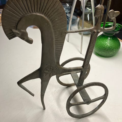 Hest i gips, 26 cm høj, 24cm bred, lidt krakeleringer ved de to ben under maven, se billede