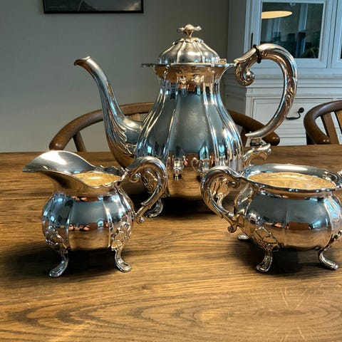 Sølvkande, sukkerskål, flødekande