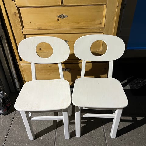 Meget skrammet børnestole er solid vipper ikke men kan jo males dem havde man i børnehaven og i vuggestuen før i tiden måske også nu ?