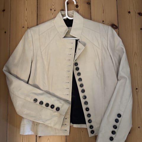 Lækker skindjakke fra Hooch. Jakken har det fineste foer i polka dots.Brystmål: 90 cm Længde:57cm. En helt normal str small.