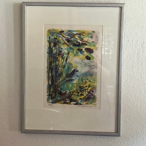 Kunstner: Ulla Haugaard Jeppesen, hvis værker bl.a. er repræsenteret på Designmuseum Danmark. 38x41 cm.
