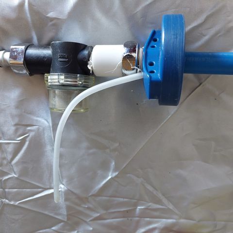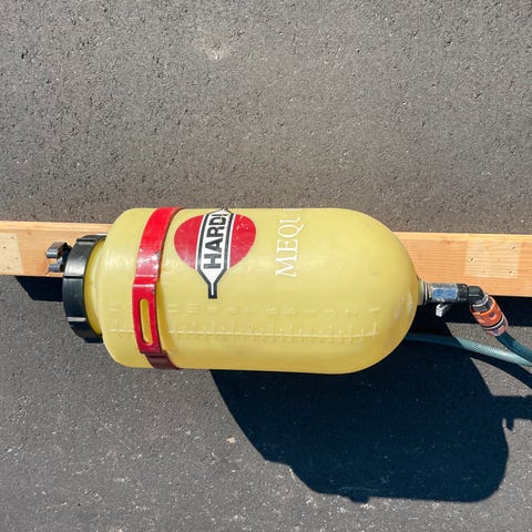 Med aftapning. Beholderen er isoleret og holder vandet koldt. I fin stand
