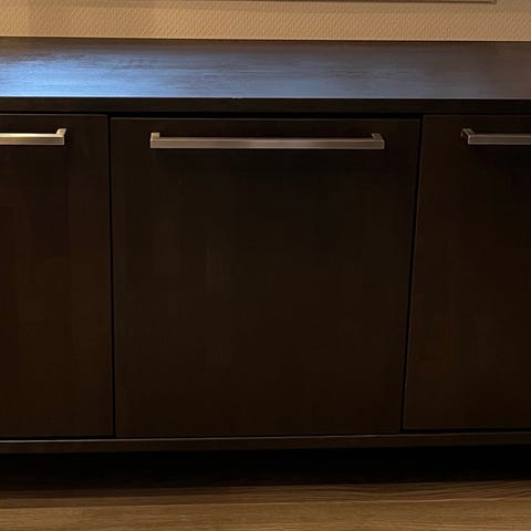 Smuk skænk lavet i massiv bøg, lakeret i lækker nødde brun farve. Sælges da vi bare gerne vil prøve noget nyt.