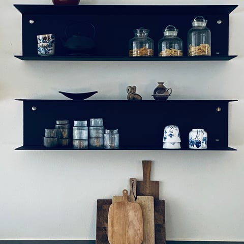 Flot svævende VIPP922 hylde i sort på 100 cm. Giver meget ekstra opbevaringsplads.