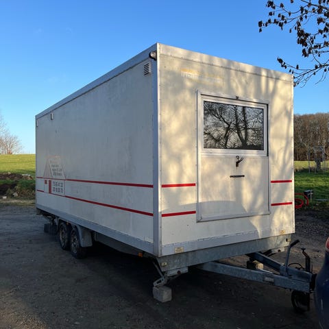 Vognen er pt opdelt i 3 rum til heste. Brugt, men tæt og i absolut brugbar stand. Der er ikke bund i vognen.