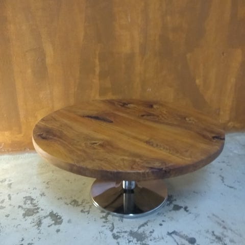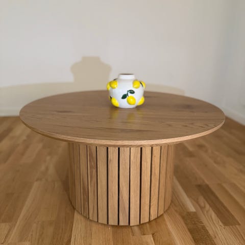 Milas rundt lamel sofabord - Ø80 cm - Røget egefiner med søjleben. Brudt emba...