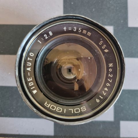 Her et MF Prime objektiv Soligor 350mm f/5.6 med Konica AR bajonet.