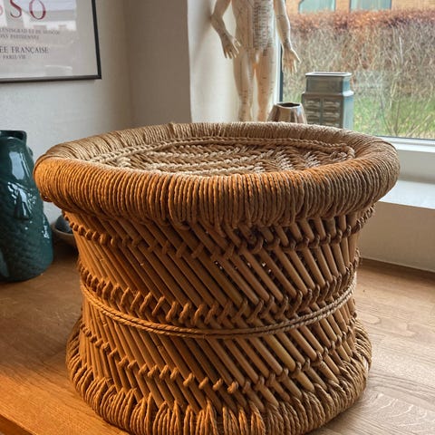 Fin gammel skammel, også kaldt Elefantfod i bambus og flet. Den er fra
