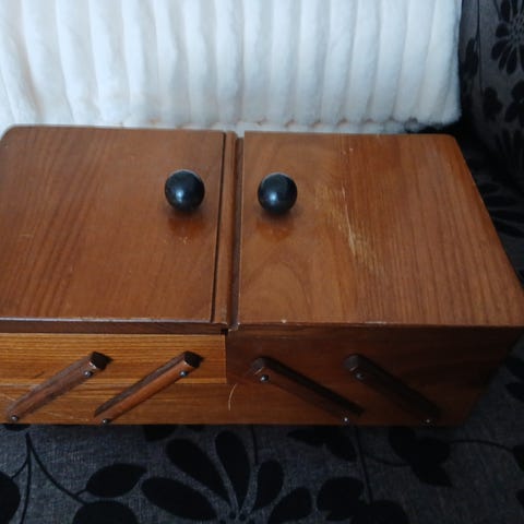 Syæske, Træ, Gammel syæske med masser af plads. Fungerer perfekt. Der mangler et håndtag på den ene side, men det har ingen betydning for funktionaliteten