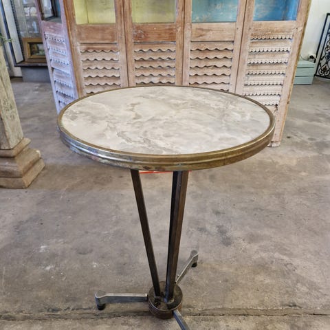 Gammelt fransk cafebord. Stel i støbejern og plade i marmor.